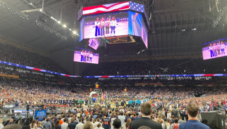 The view from my press row seat prior to tipoff at the Final Four last spring in San Antonio. Can a Big 5 team make March Madness this season and end a three-year drought? (Photo: Aaron Bracy/Big5Hoops)